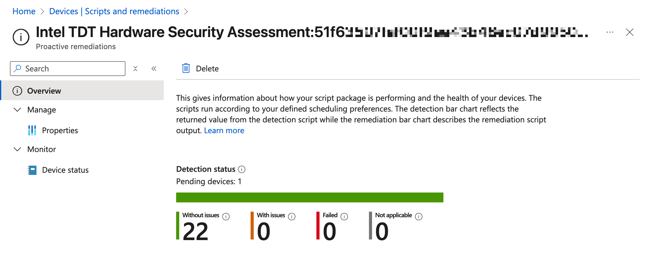 The script only includes a detection phase and the Intel Discovery data is returned via the graph api. Organizations can edit the script targeting and frequency to meet their needs.