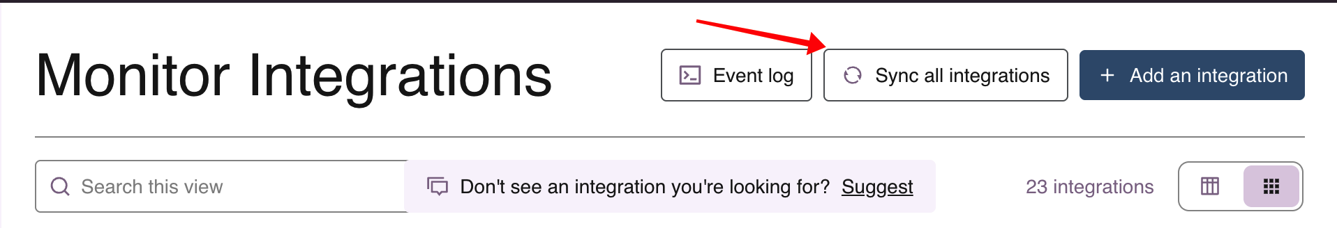 Once data is returned from the remediation script, you can manually force a Monitor sync by clicking Sync All Integrations from the Monitor Integrations page.