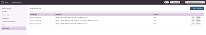 SCM allows administrators to send email and slack notifications when certain conditions are met during an SCM import. Notifications are configured within the Account Settings page here.