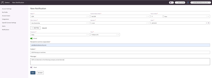 - Object - This is linked to the control category (EDR, Email, Endpoint Management)